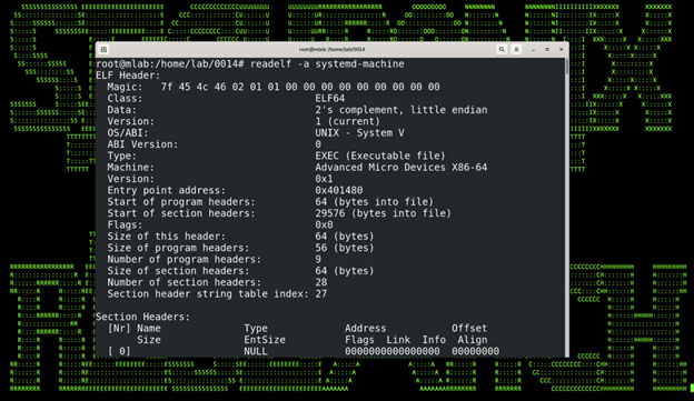Each sample we analyzed was a Linux executable ELF file having a unique name. For example, one particular analyzed sample’s binary data can be seen in figure 3: