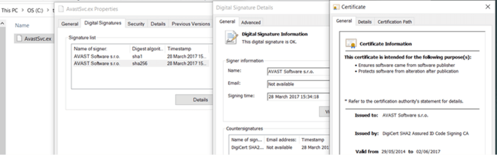 Figure 2: AvastSvc.exe file properties (image credit: Sophos, Ltd. [news.sophos.com])