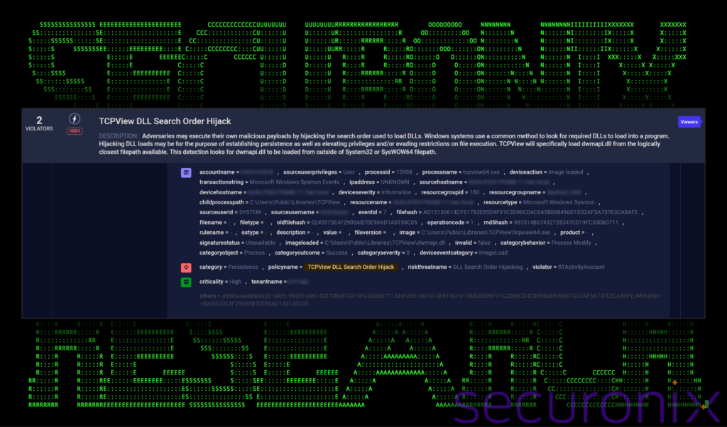 Figure 6: Detecting DLL sideloading in Securonix