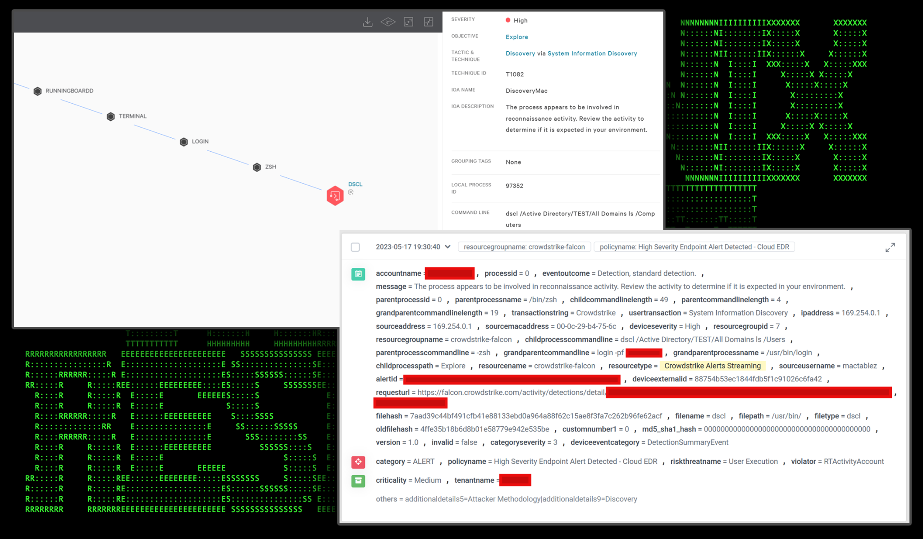 In the figure below we can see an active alert being used for AD enumeration from a macOS host. In this example we can leverage EDR alerting to provide us with detailed information such as command line and process-related information.