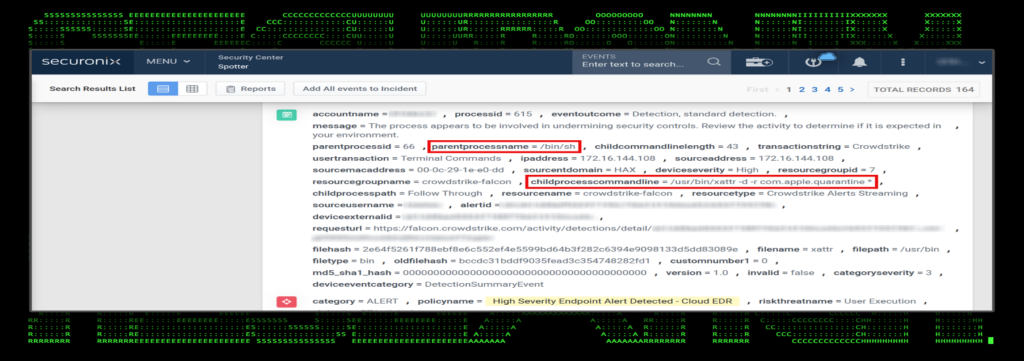 Figure 3: xattr command usage and detection in Securonix