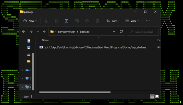 For example, the attacker could put a file named “..\..\..\..\AppData\Roaming\Microsoft\Windows\Start Menu\Programs\Startup\tcp_shell.exe” on the webdav server seen in Figure 3.