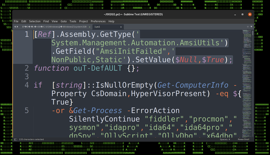 First the malicious PowerShell script kicks off with an AMSI evasion technique. This technique is fairly well-known and effectively attempts to disable AMSI code analysis state thus preventing malicious code analysis.