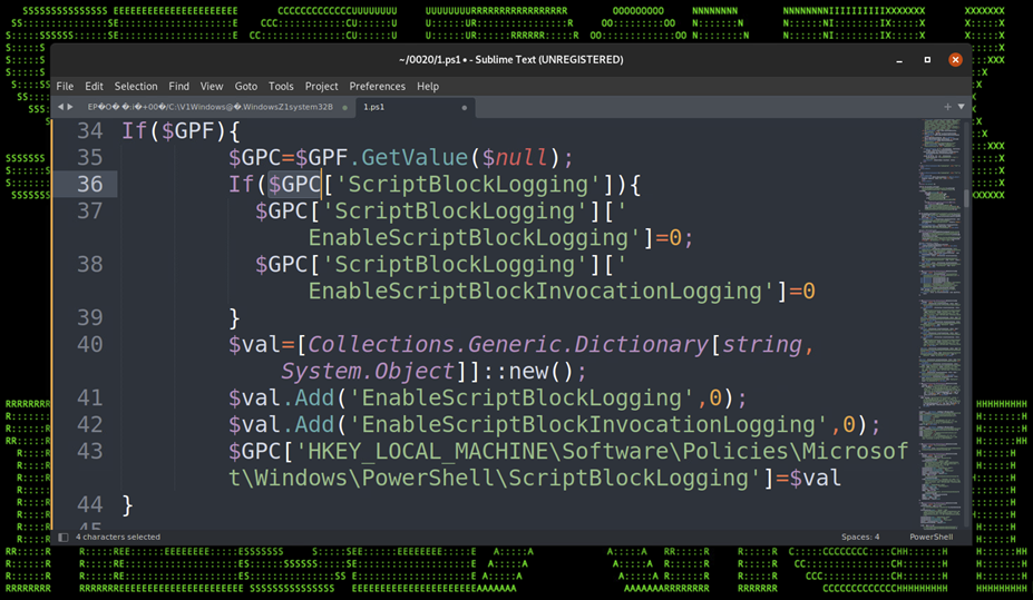 Lastly, module logging and the standard Microsoft PowerShell logs are disabled via “LogPipelineExecutionDetails” property and via registry edits.