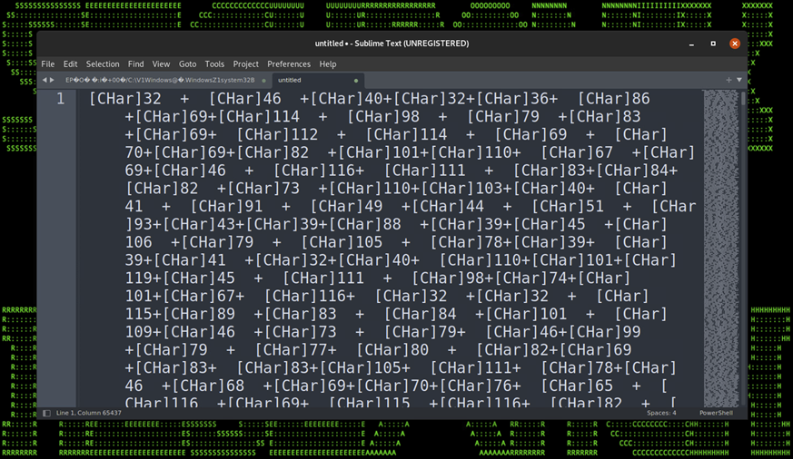 • rg_functionality = “Microsoft Windows Powershell” AND eventid=4104 AND (message CONTAINS “[char[]]” AND message CONTAINS “-join”)