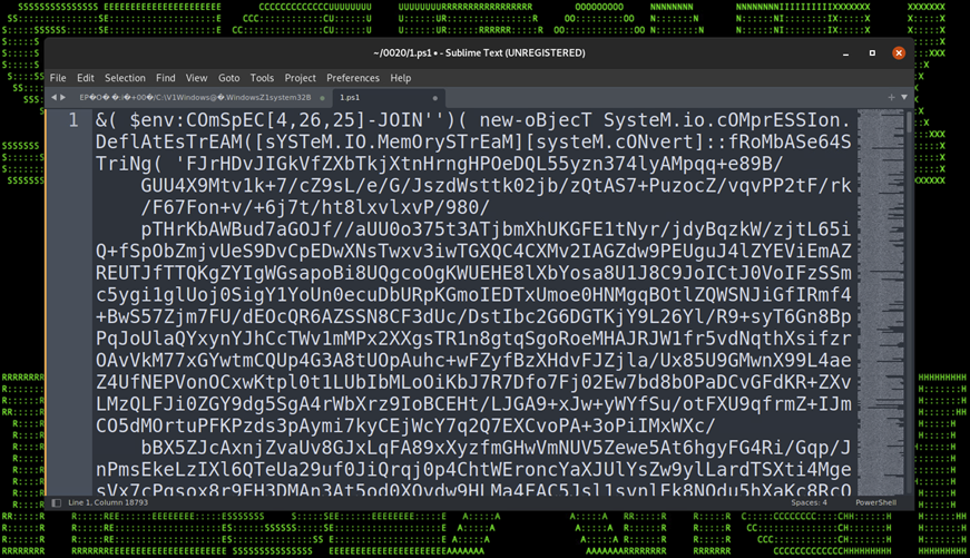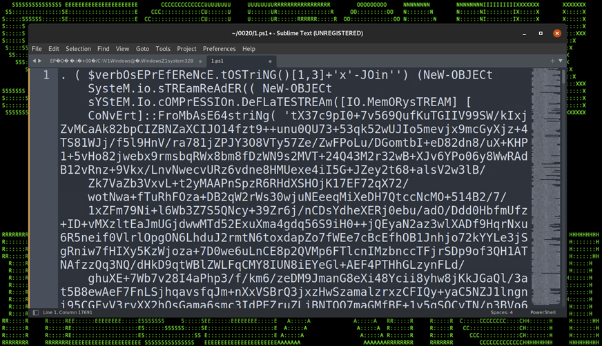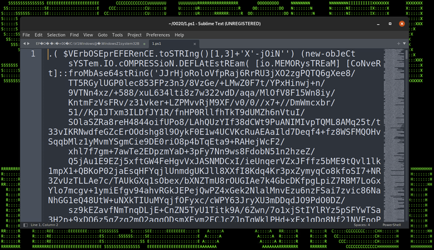 Let’s start peeling back this onion of stagers by first examining the first stage as it is executed from the remote C2 server. The file which is loaded remotely via invoke expression is an extensionless file simply named “0”.