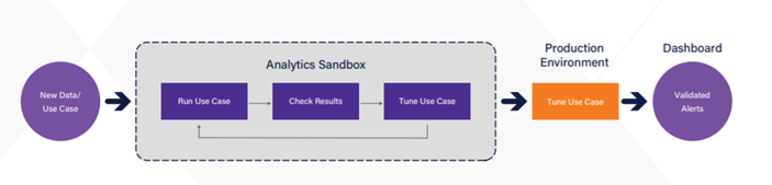 Securonix Analytics Sandbox was introduced to provide the ability to create, manage, and promote policies using production data, without impacting production or introducing analyst confusion. In Analytics Sandbox threat modeling, use cases are fine-tuned, validated, and then deployed to production.