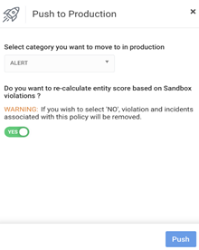 Users can maintain entity risk ratings intact in the Securonix Analytics Sandbox until the new use cases are pushed to live production. The use cases are moved from the sandbox to production, and testers have three options:
