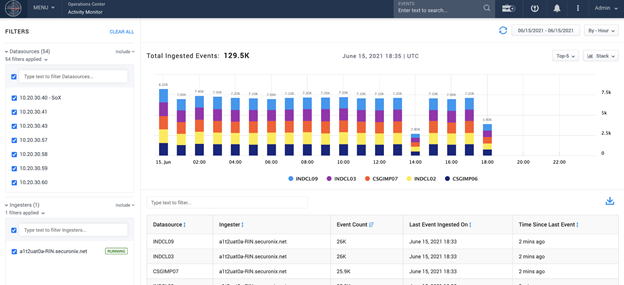 As part of the 2021 Jupiter launch, Securonix SaaS customers now have access to Activity Monitor, an interactive UI that gives administrators visibility into EPS by data source. Customers can access Activity Monitor in their existing Securonix UI to view and analyze data ingestion in real time and sort by log source. This visibility allows security teams to fine-tune usage as needed and quickly understand and fix any ingestion bottlenecks before they become larger issues.