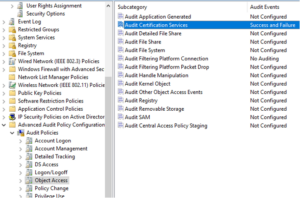 Note: The “Audit Filtering Platform Connection” Subcategory is extremely noisy and not entirely necessary if Sysmon with Event ID 3 is installed on the monitored section of the domain