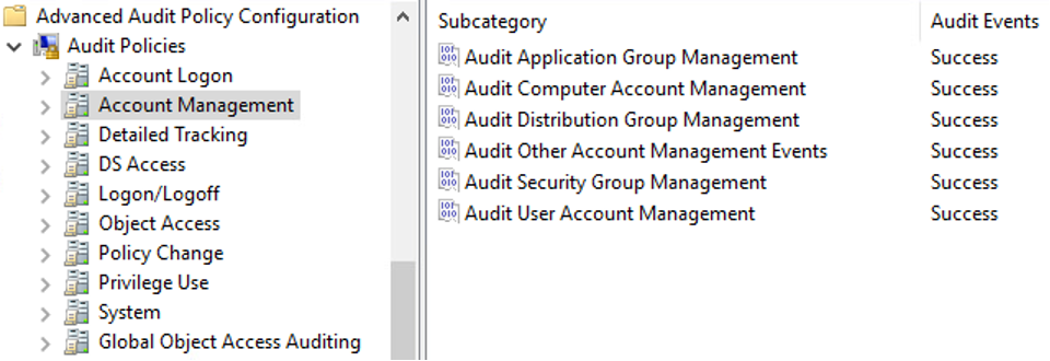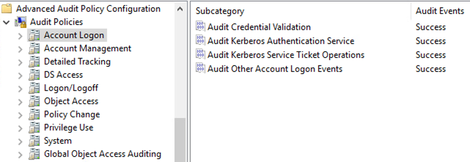 A logging profile set up with a baseline of ingested sources is the first step. This section describes the configuration settings on our domain controllers (DCs), endpoints, and servers. Some of the following sections are specific to specialized attack techniques and the logging required to detect that specific attack.