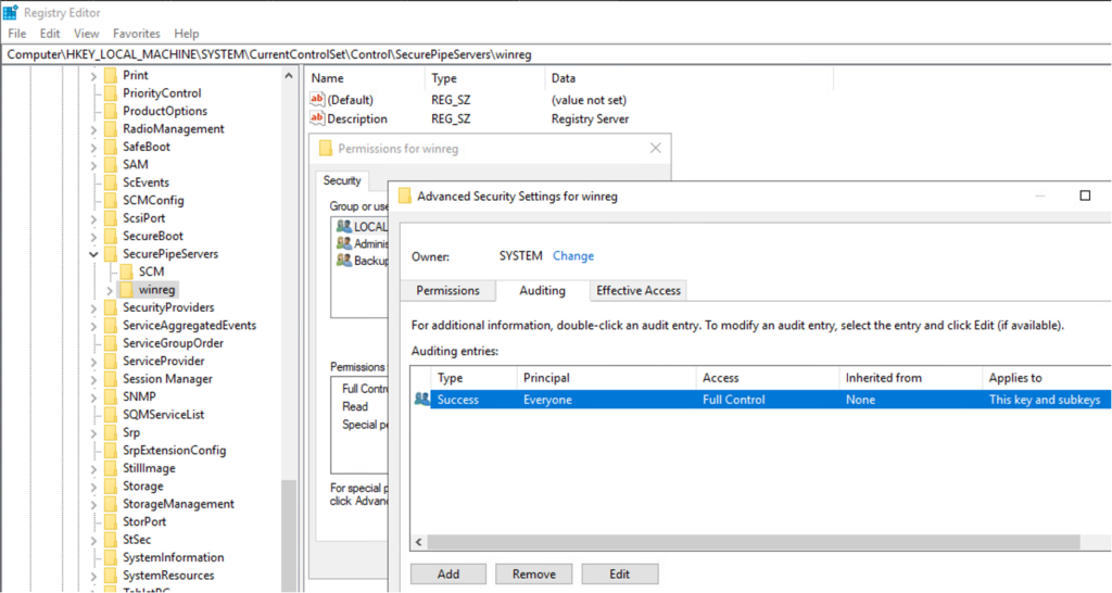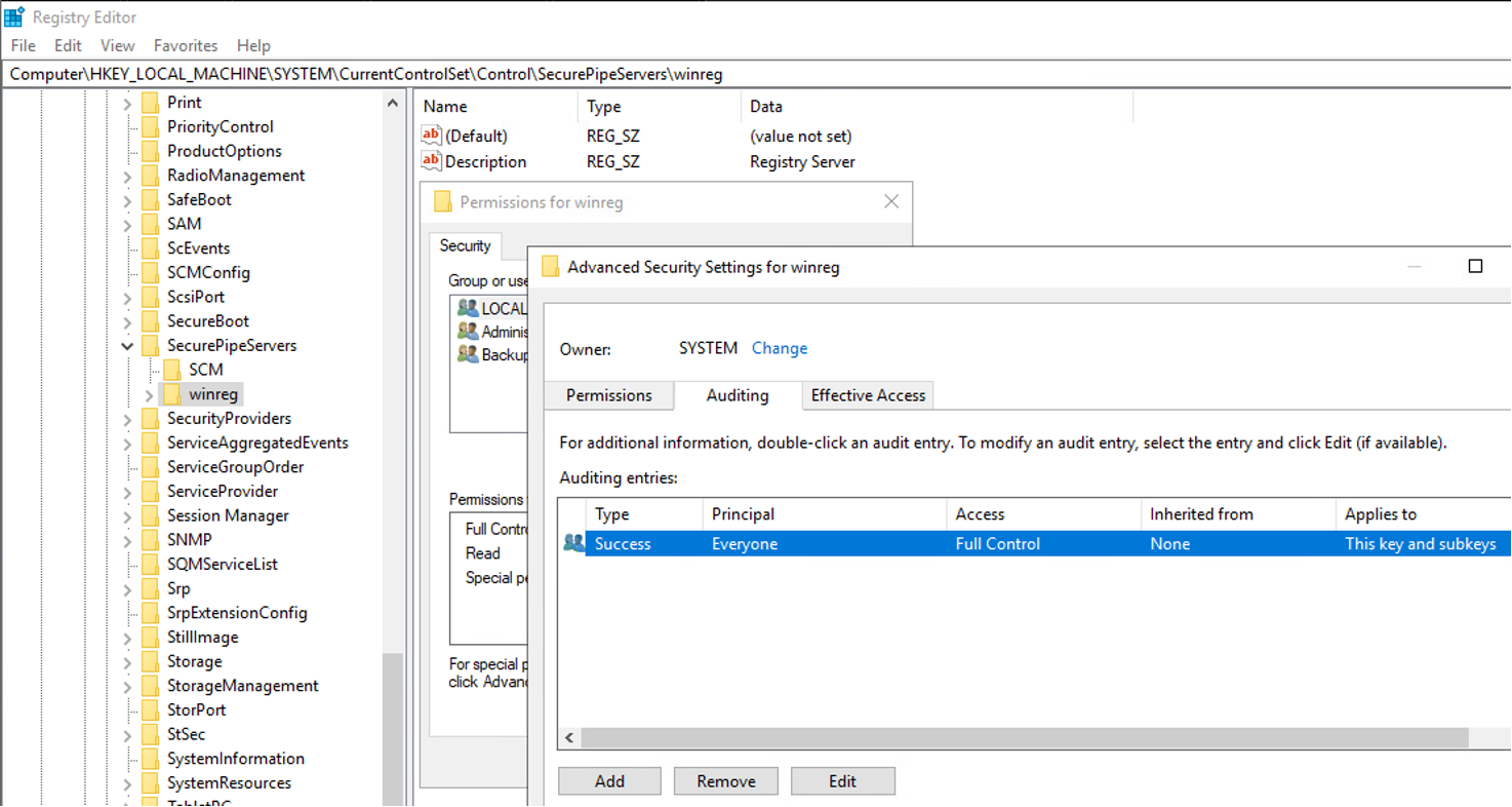 Computer\HKEY_LOCAL_MACHINE\SYSTEM\CurrentControlSet\Control\SecurePipeServers\winreg