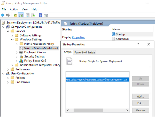 Then you can create a GPO with a startup script to run and update Sysmon automatically. Here’s an example: