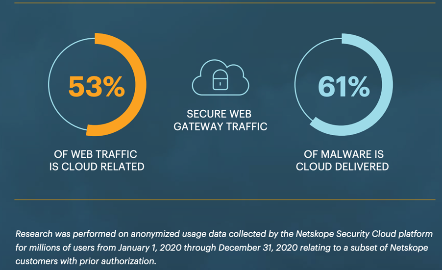 Netskope, in a survey of usage data, identified that 61% of malware is cloud delivered.