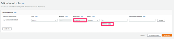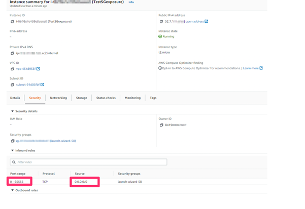 In the scenario we see in the screenshot below, the account used by the attacker was able to modify the permissions for an AWS instance to make it accessible by anyone on the internet. The account was able to modify permissions to allow traffic from any IP address (0.0.0.0/0) to any port (0-65535).
