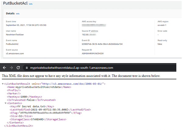Now we see a user that has elevated privileges modifies permissions for the bucket, making it publicly accessible.