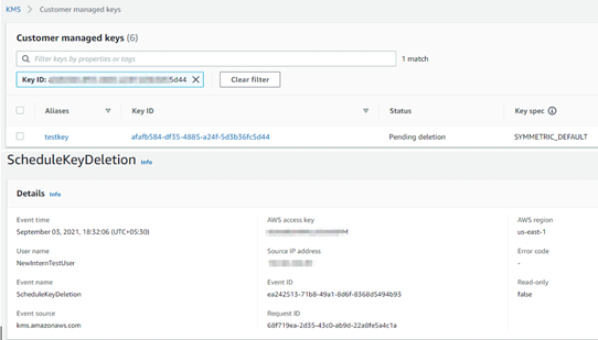 In the example below, we can see that the key was intentionally deleted. This would cause all data and any services leveraging these keys to be made inaccessible.