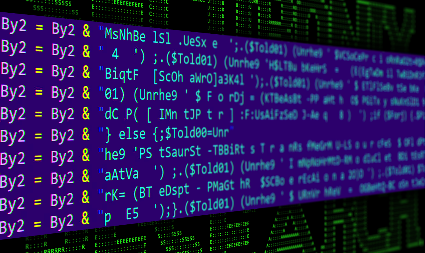 Figure 5: Obfuscated PowerShell script extracted from VB code