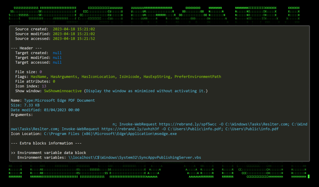 Figure 1: TACTICAL#OCTOPUS shortcut file information including executed command line