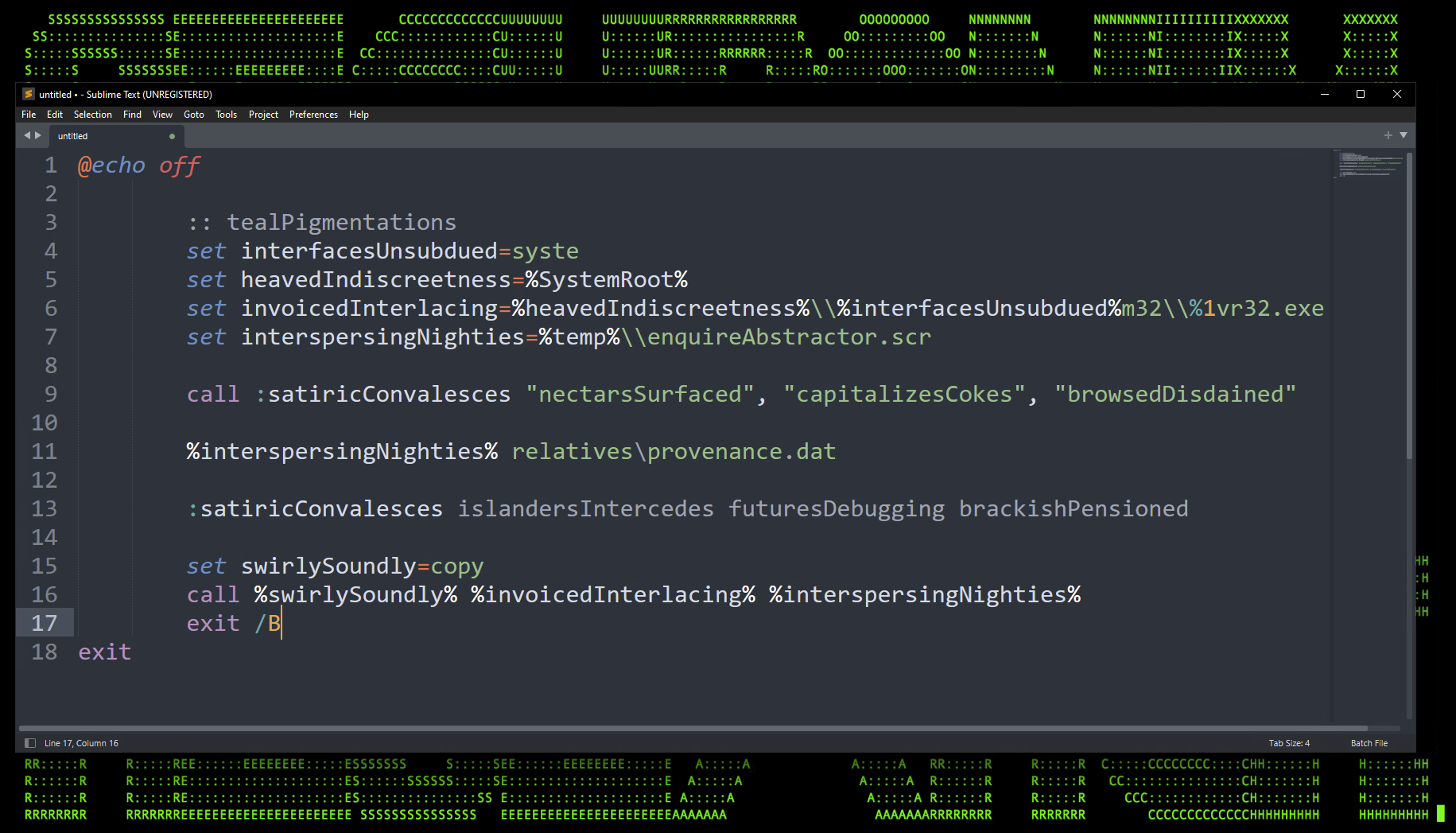 But how did we get to that point? The batch file is doing a few interesting things: First, the path is being broken into several parts. The variable “interfasesUnsubdued” contains system which is parsed into the “%systemRoot%/System32/ path.
