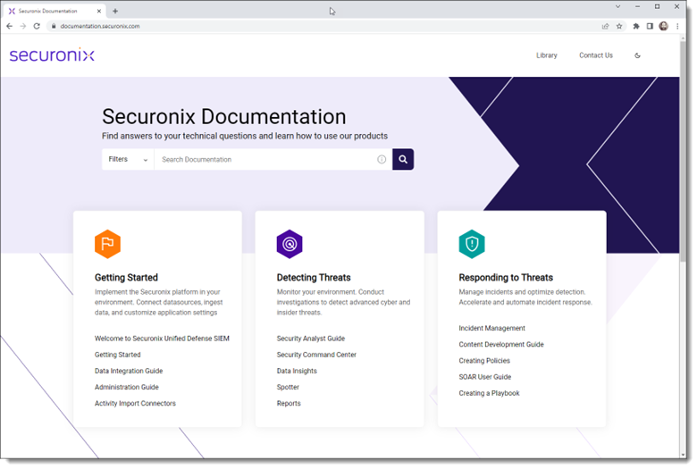 To learn more, see a video demonstration here: New Securonix Doc Portal or see it in action here: Securonix Documentation.