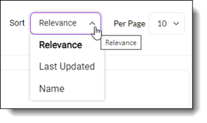 Search results can be sorted by relevance to the search query, date the most recent update was published, or alphabetically by the topic name.
