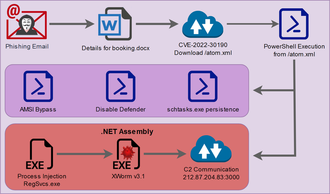 CSharp code execution contained within the main PowerShell script is used to deliver the final payload which ends with XWorm v3.1 execution. Below is a diagram of the overall attack chain. We will dive into each portion of the attack chain in depth as we continue.