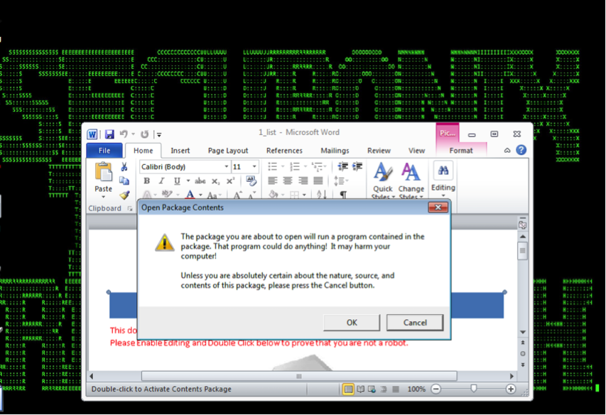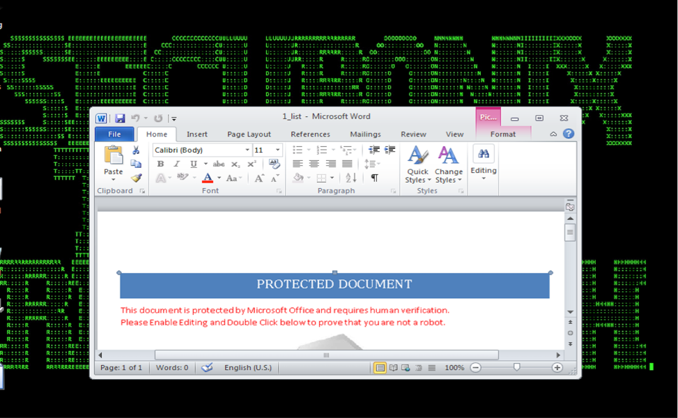 Figure 1: Carbanak/FIN7 Attack – Initial Infiltration – Malicious Word File