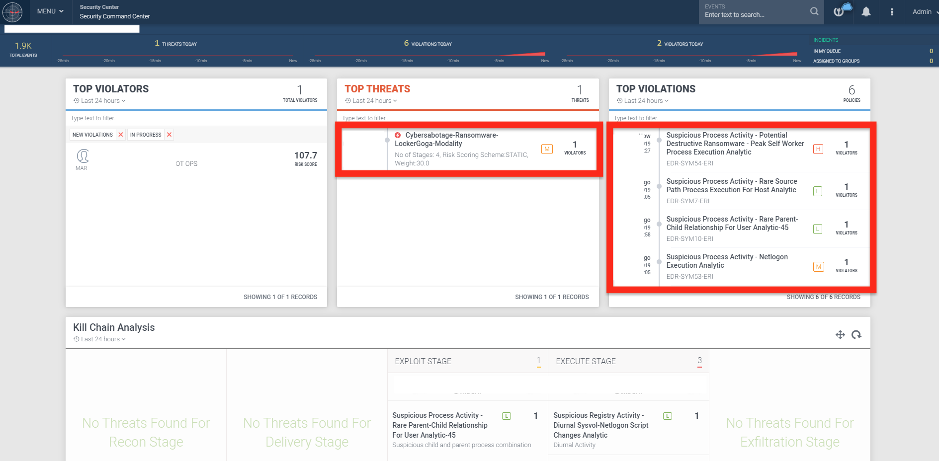 Some high-level examples of the relevant Securonix behavior analytics and predictive indicators that could help detect such attacks in your IT/OT environments are given below. Figures 4 and 5 show a practical example of the detection of the LockerGoga attacks using Securonix.
