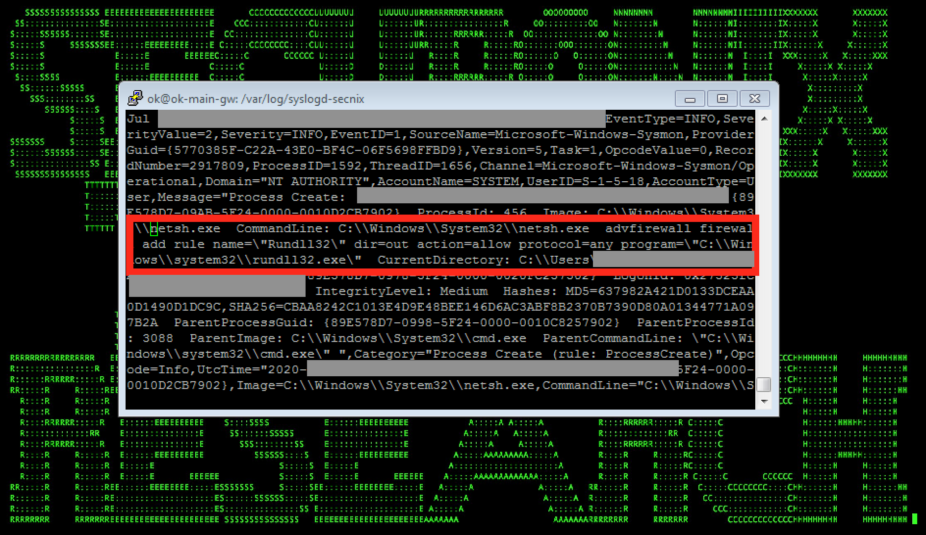 Figure 4: Example of WastedLocker/EvilCorp Malicious Activity (New Firewall Rule Creation) in Logs