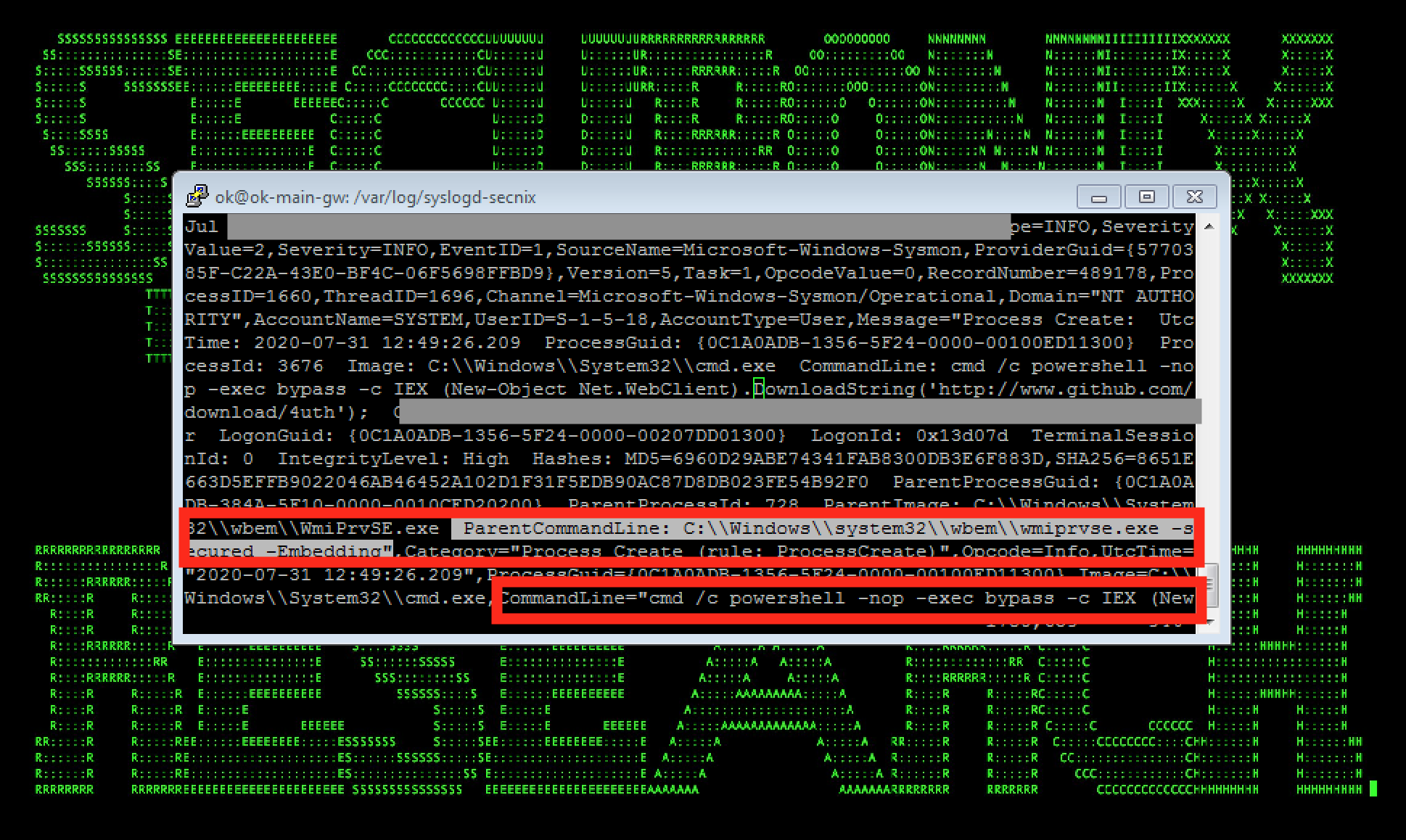 Figure 5: Example of WastedLocker/EvilCorp Malicious Activity (Lateral Movement Using WMI/Powershell) in Logs