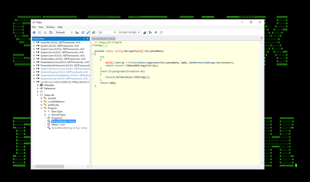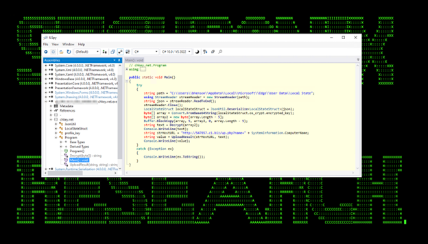 The next module that was loaded is chkey.net.exe which was used to extract a state key which is stored in the Local State file. This state key is encrypted using DPAPI. With a state key, a threat actor (TA) can decrypt the cookie database offline and use this to import cookies into a machine controlled by the TA and access any available services without MFA authentication.