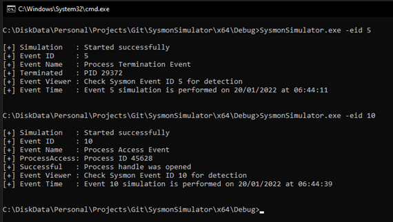 Read more about using SysmonSimulator for a detailed step-by-step guide on how to get started. This post will be helpful for those who want to understand in depth how Sysmon detects different types of events in Windows and how those attacks can be simulated using different Win32 API functions.