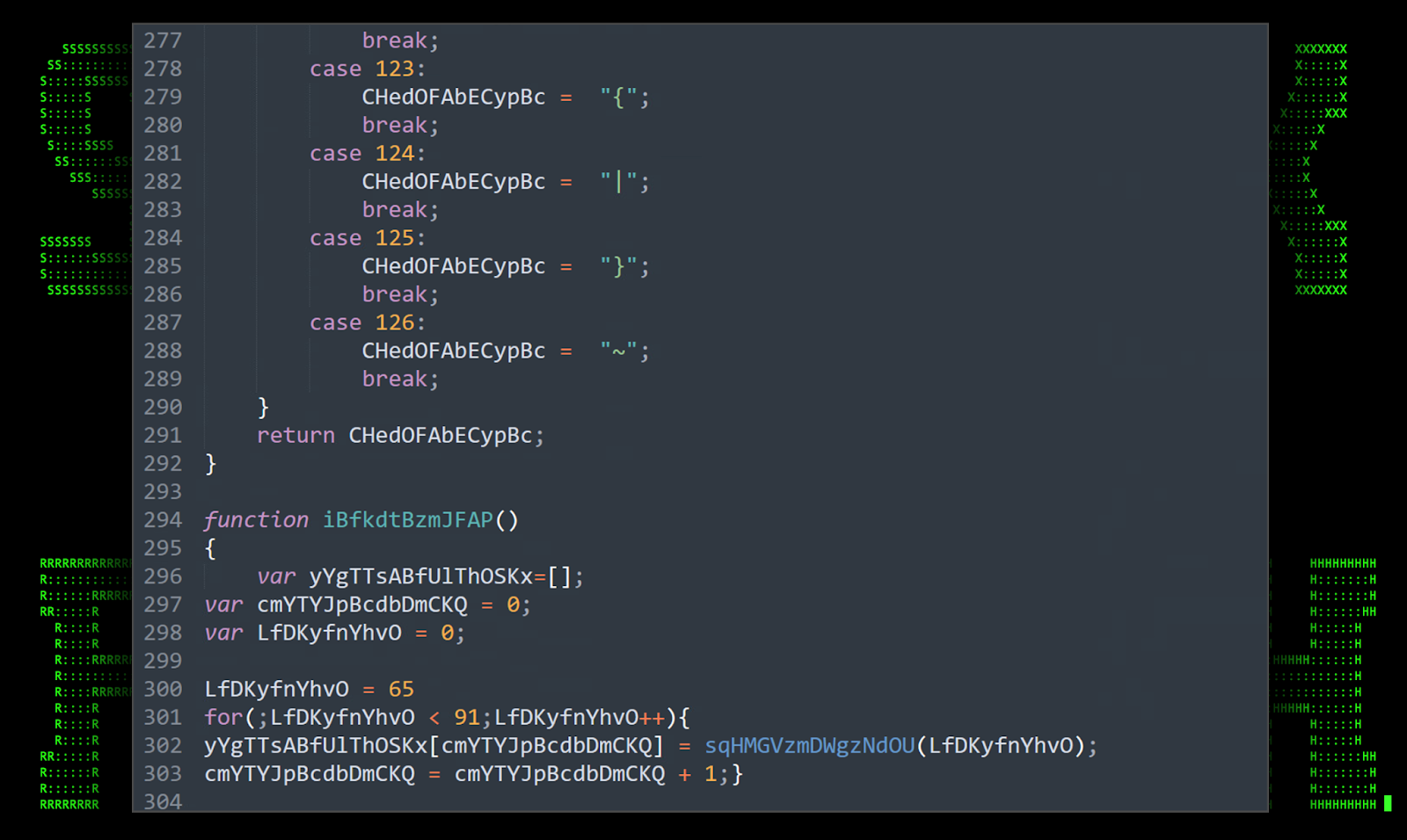 In this particular sample, the level of obfuscation is pretty extreme. As seen in the figure above, the script is full of character substitution, randomly generated variables and broken apart strings.