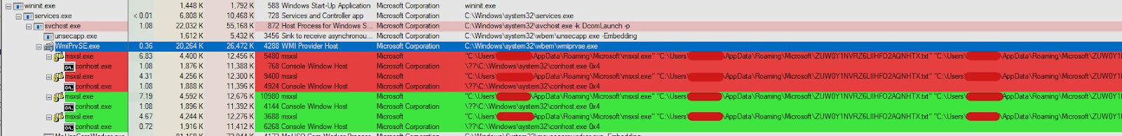 Similar to that of the previous LOLbin example using ie4uinit.exe, msxsl.exe is executed from the attacker controlled directory in %APPDATA%\Microsoft\.