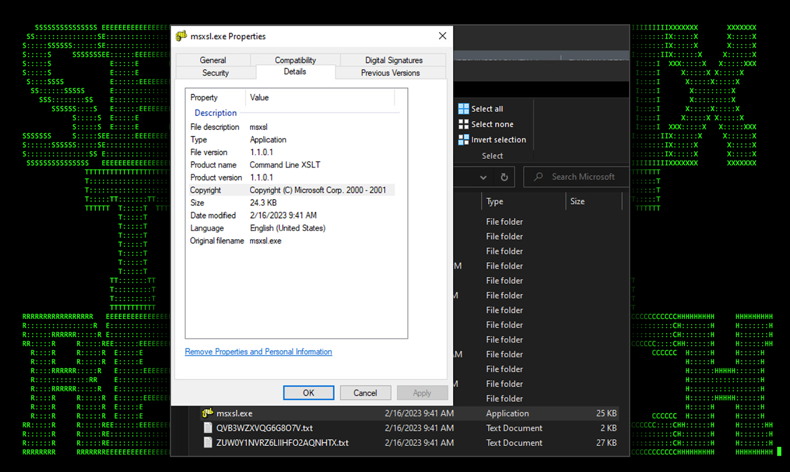 Figure 8: [OCX#HARVESTER] – built msxsl.exe binary details