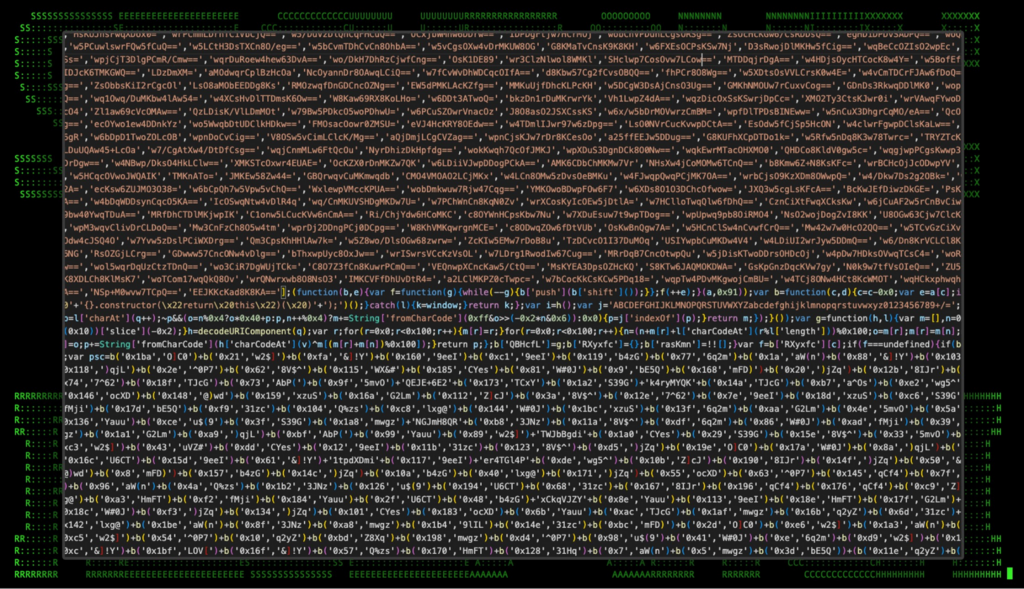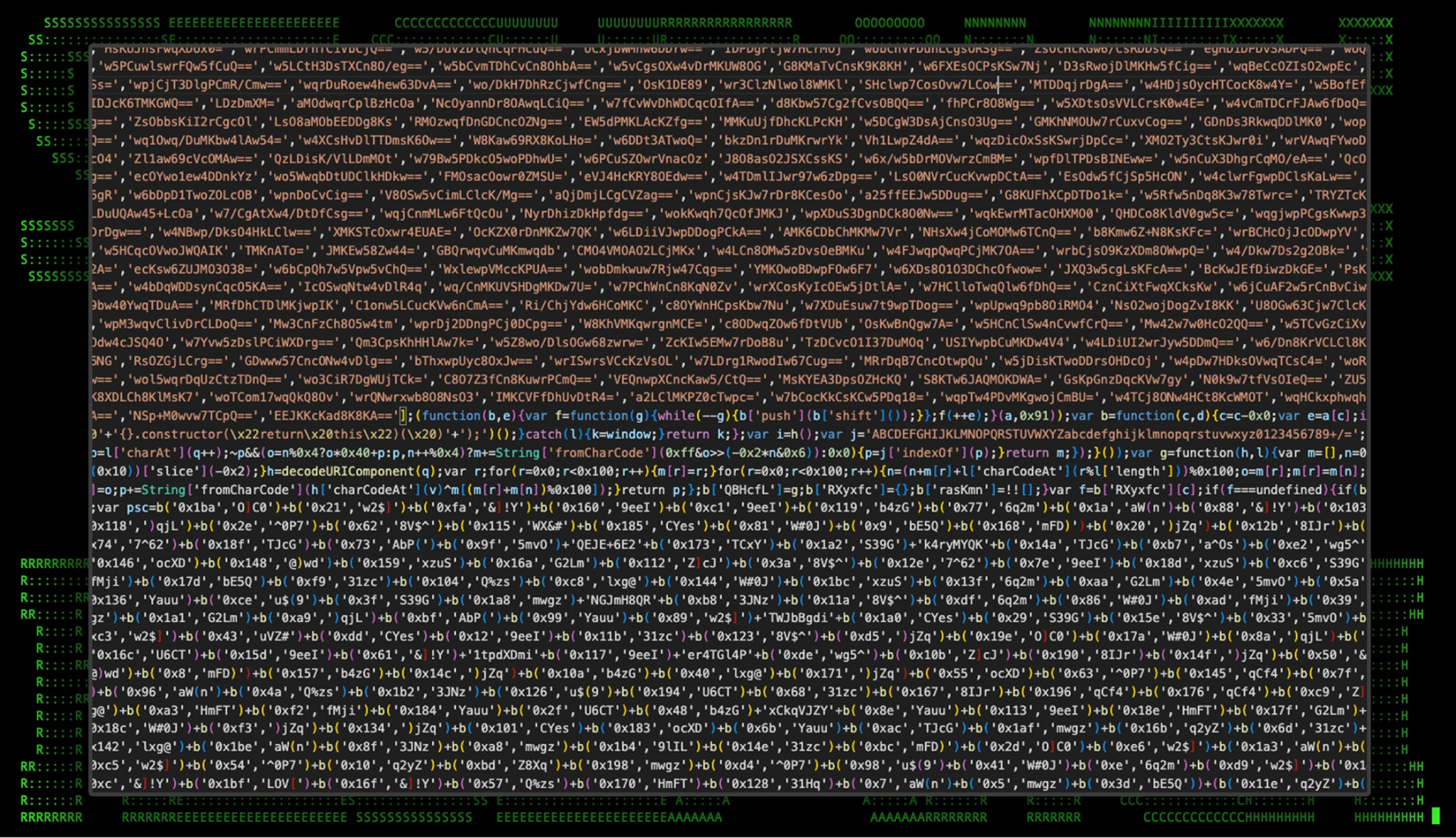 After examining the contents of page1.html, we found a huge JavaScript one liner embedded into the HTML within <script></script> tags. Its contents were heavily obfuscated, however we observed it executing another obfuscated PowerShell script which we’ll dive into next.