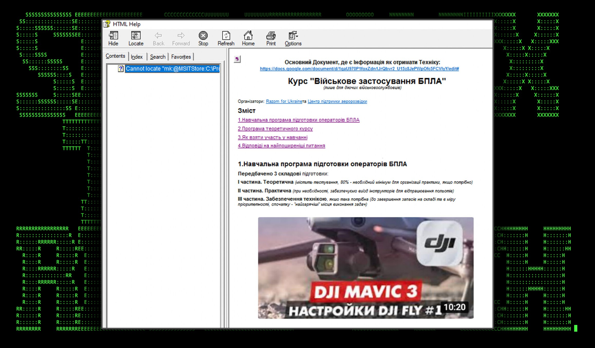 Figure 2: lure document contents for Інфо про навчання по БПЛА для військових.v2.2.chm