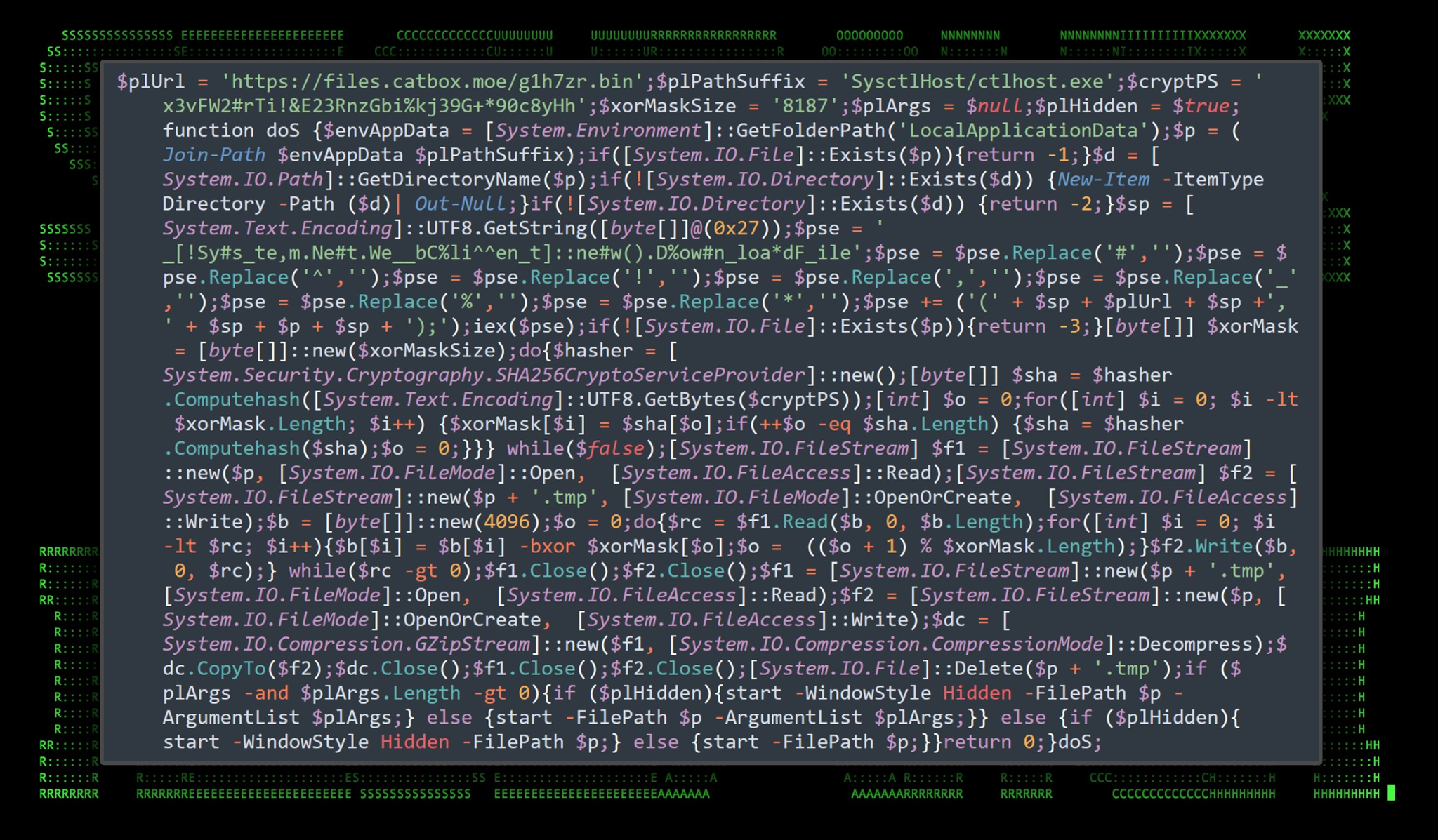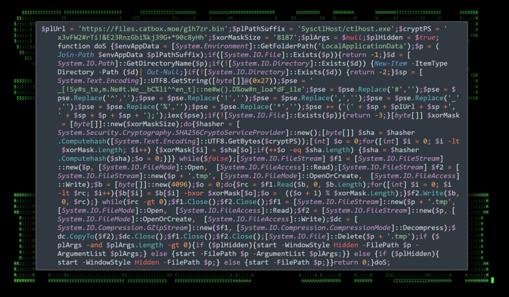 With the PowerShell code a bit more human-readable, it’s pretty clear as to what it’s doing. In general, the script downloads a payload from hxxps://files.catbox[.]moe/g1h7zr.bin decodes and decrypts it and saves it to the local Appdata folder to SysctlHost\ctlhost.exe.