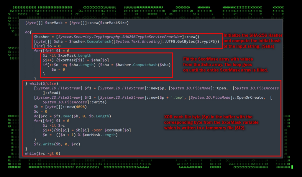 Figure 8: Deobfuscated PowerShell — binary file decoding