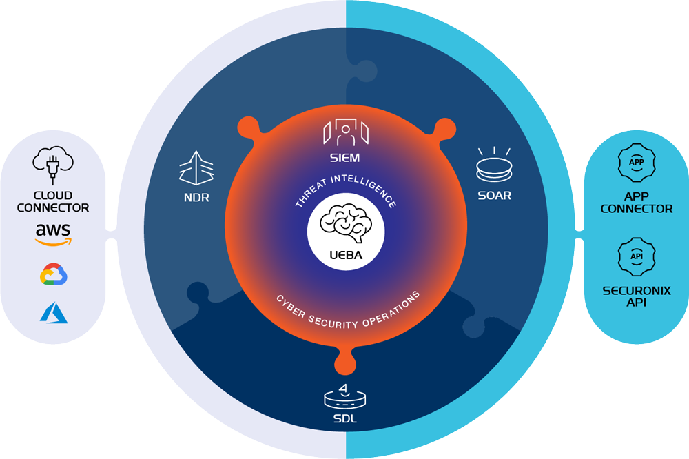 Securonix Security Operations and Analytics Platform is our Gartner Magic Quadrant leading SaaS SIEM, with our award-winning UEBA at its heart (well, brain actually). All the data, alerts, alarms, and threats are stored in an open standard, secure security data lake.
